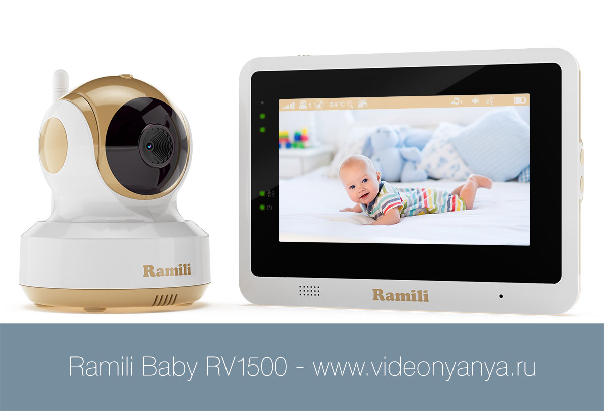 Видеоняня Ramili Baby RV1500 имеет обратную связь, ночное видение, голосовую активацию. В ней предусмотрены Push-уведомления для работы с мобильными условиями при подключении к интернету. Например, родителям приходят уведомления об изменении температуры в детской, о плаче и крике. В памяти записаны колыбельные мелодии.