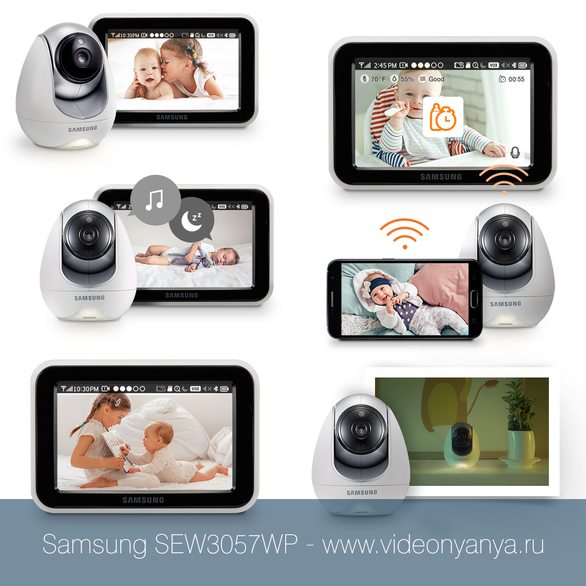 Корейская корпорация давно выпускает приборы для наблюдения за детьми. Она славится тем, что регулярно предлагает новинки, внедряя инновации. И видеоняня Samsung SEW-3057WP заслуженно получает самые восторженные отклики, так как в ней сконцентрирован максимум полезных функций. Можно сказать, что это целая система по контролю детской комнаты. Правда, такой прибор дороже вышеупомянутого британского, но и опций в нем больше.