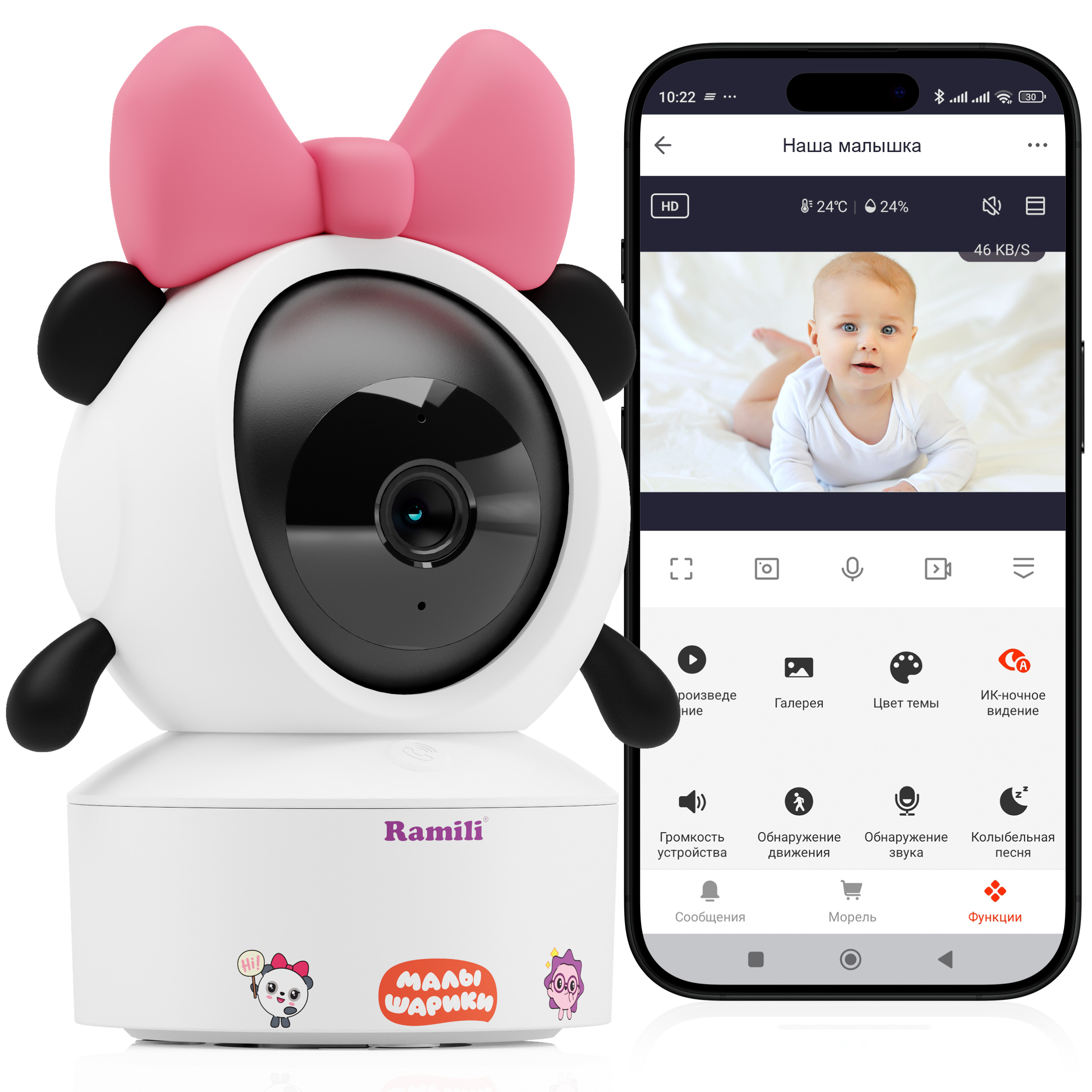 Wi-Fi 2K Видеоняня Ramili Baby RV100CNUSHA Нюша, Малышарики – это надёжное устройство для комфортного удаленного наблюдения за ребенком внутри дома и далеко за его пределами. Благодаря современных технологиям и использованию передовых компонентов Ramili Baby RV100C можно назвать одной из самых безопасных устройств для удаленного наблюдения за ребенком. Эта модель не потеряет своей актуальности для родителей, ведь с помощью камеры можно не только контролировать малыша или работу няни. Когда малыш подрастет, камера послужит устройством безопасности для наблюдения за домом или, например, за домашним питомцем.